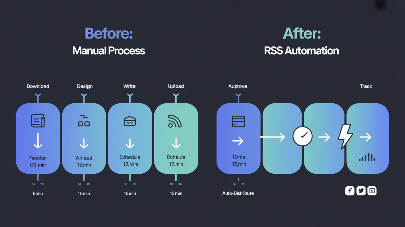 With RSS automation handling distribution, you reclaim those hours for strategy, customer relationships, or simply stepping away from the screen. The testimonials still get shared. Your social presence stays active. But you're no longer the bottleneck.